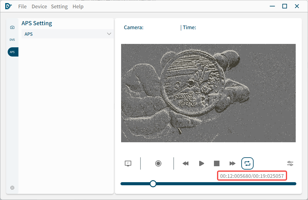 在相机播放时,回放相关的按钮会置灰,无法点击。在相机播放模式下,显示窗口上方会显示相机的序列号以及相机当前播放的时间戳信息。